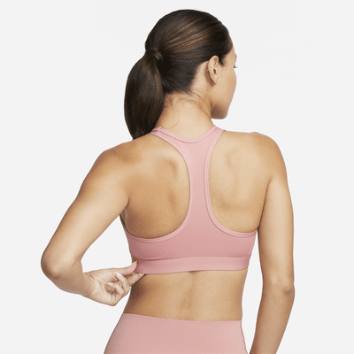 Áo ngực Swoosh này có các miếng đệm được may vào giữ vị trí, giúp bạn tập luyện mạnh mẽ mà không cần lo lắng về việc chúng có thể di chuyển hoặc gập lại. Rất phù hợp cho buổi tập và lớp học nhảy múa, hỗ trợ trung bình đem lại sự ôm vừa vặn, giúp ngực bạn giữ chặt không bị rung lắc khi tập luyện. Ngoài ra, chất liệu thấm mồ hôi và đàn hồi nhanh chóng phục hồi hình dạng ban đầu, giúp bạn cảm thấy thoải mái suốt buổi tập.