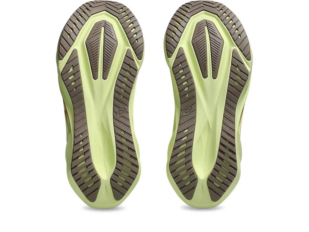 Bên cạnh đó, phần đế ngoài được thiết kế theo dạng trampoline (như mặt nhún đàn hồi), tạo cảm giác mềm mại nhưng vẫn chắc chắn. Cao su AHAR™ LO dưới đế tăng độ bám và độ bền, phù hợp với nhiều loại địa hình từ đường bê tông, công viên cho tới track sân vận động.